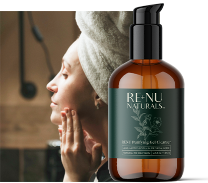 RE+NU Purifying Gel Cleanser - Deeply cleanses and refreshes for a radiant glow.